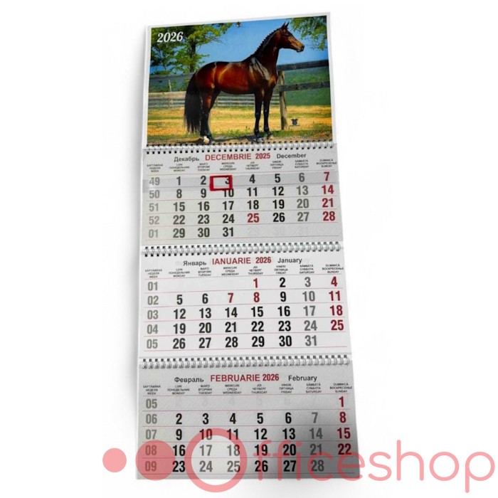 Calendar de perete, A3, 3 spiral, Caii, 2026, 100020